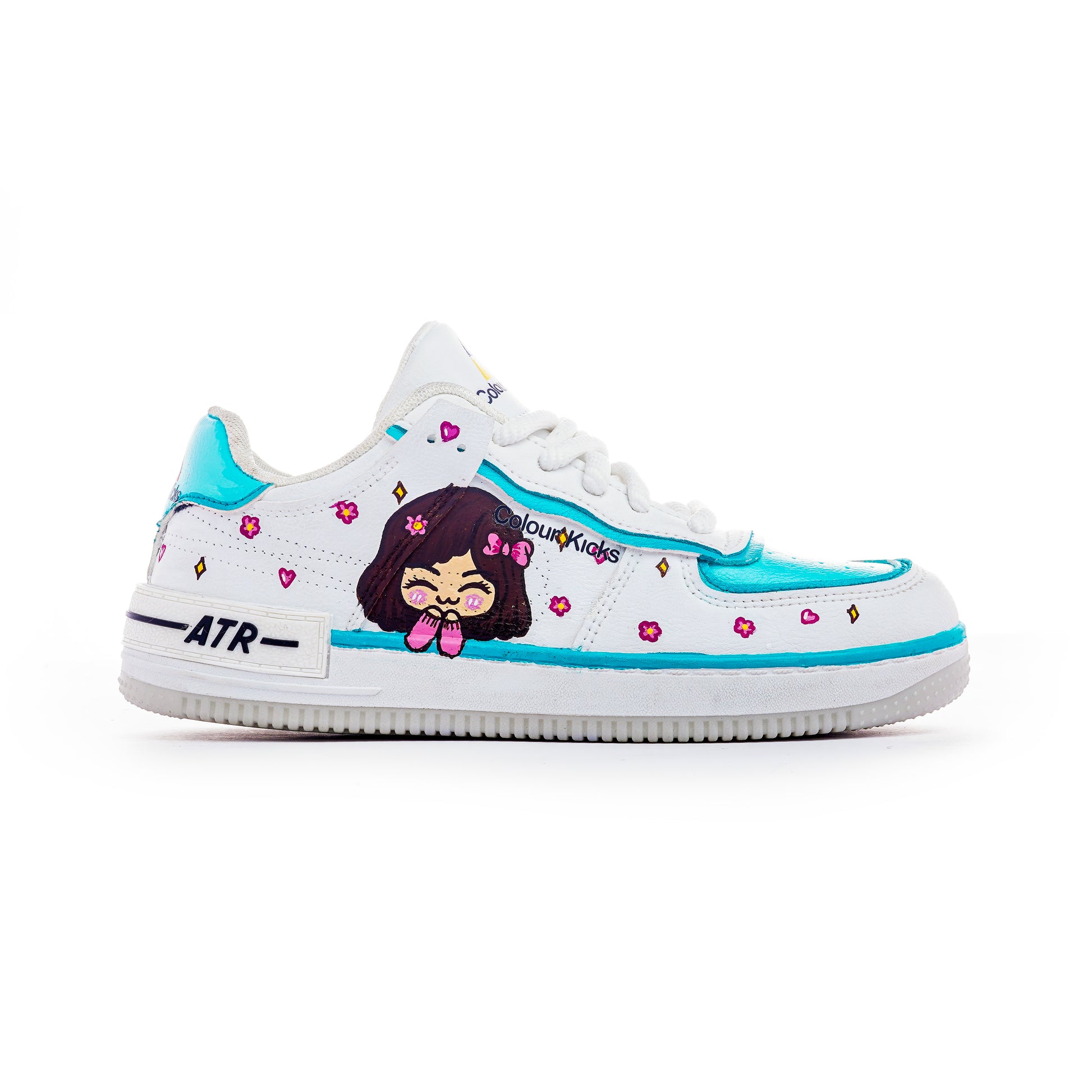 Step into fun with the CHIBI CHARM BLUE shoes, decorated with a playful hand-painted cute girl design. These unique shoes add a burst of personality and charm to any outfit, making every walk a joyful expression of style. Perfect for those who love to stand out with a touch of whimsy.